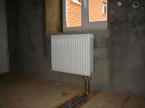 Стальной панельный радиатор с подводкой, скрытой в деревянном полу